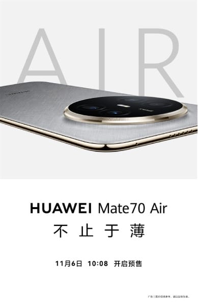 Huawei officially took the wraps off its new ultra-thin smartphone, the Huawei Mate 70 Air, in China yesterday. It goes on pre-booking today from 10:08 AM CST.